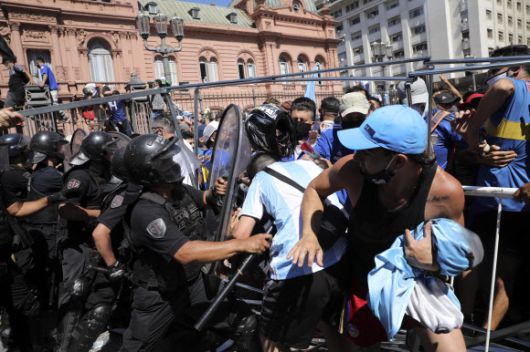 아르헨티나 수도 부에노스아이레스의 대통령궁 일대가 축구 영웅 디에고 마라도나의 마지막 가는 길을 배웅하려는 팬들로 가득 찼다. 조문 시간 마감을 앞두고 미처 작별 인사를 하지 못한 사람들이 한꺼번에 몰리면서 경찰이 최루탄과 고무탄을 동원하며 통제에 나서기도 했다.
