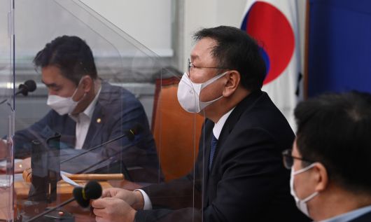 김태년 더불어민주당 원내대표가 27일 오전 국회에서 열린 최고위원회의에서 발언하고 있다. [연합] |