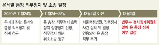 법원이 추미애 법무부 장관의 직무배제 명령이 부당하다고 낸 윤석열 검찰총장의 직무정지 효력 집행정지 소송 심문기일을 법무부 징계위원회 소집일(12월2일)보다 빠른 30일로 잡았다. 법원이 사안의 시급성을 인정해 윤 총장에 대한 징계가 내려지기 전에 직무 복귀 여부를 결정하겠다고 판단한 것이다. 윤 총장 징계 절차에 속도를 내던 추 장관은 의외의 복병을 만나게 됐다.