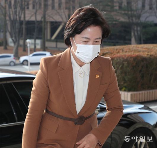 추미애 법무부 장관이 27일 법무부 과천청사로 출근하고 있다. 추 장관은 이날 검사들의 집단 반발에 대해 “검사들이 입장문을 내며 이번 판사 불법 사찰 문건에 대해선 아무런 언급이 없고, 당연시하는 듯한 태도를 보고 충격을 받았다”는 내용의 첫 입장문을 공개했다. 과천=김재명 기자 base@donga.com |