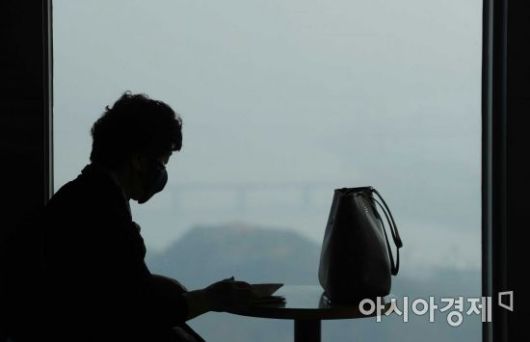 서울 등 수도권 초미세먼지 농도가 '나쁨' 수준을 보인 서울 남산서울타워에서 한 시민이 뿌연 도심 하늘을 배경으로 휴식을 취하고 있다. 사진은 기사와 무관함 /문호남 기자 munonam@ |