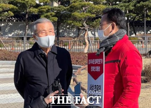 [더팩트ㅣ박경현 기자] 김종인 국민의힘 비상대책위원장이 28일 윤석열 검찰총장의 직무정지 조치와 관련해 청와대 앞 1인시위에 나선 유상범 국민의힘 의원을 만나 격려하며 "추 장관의 모습을 보며 너무너무 역겨워하는 것이 일반적 현상"이라고 말했다.