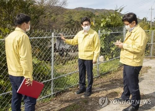 아프리카돼지열병 대응 상황 점검하는 조명래 장관[환경부 제공. 재판매 및 DB 금지] |