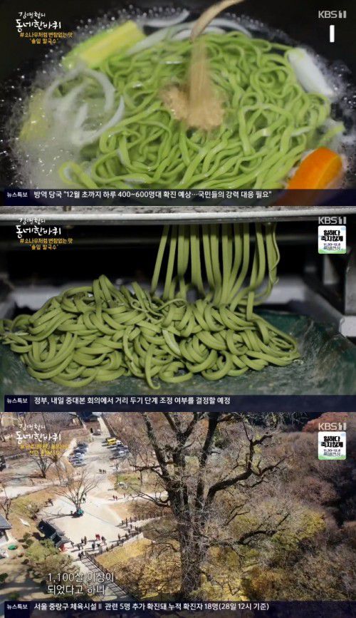 양평 솔잎 칼국수를 맛본 김영철은 "솔잎 즙을 넣어 반죽했는데도 솔잎 향이 진하지 않다"면서 "솔향이 진하면 어떡하나 걱정했는데 괜찮다"고 평했다.