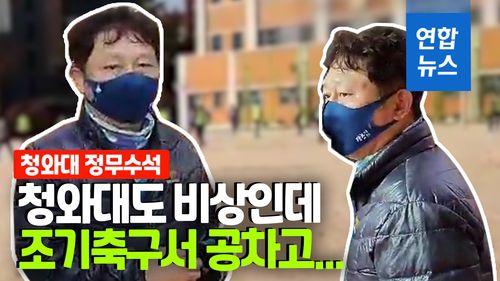 29일 한 제보자가 연합뉴스에 제공한 동영상을 보면 최 수석은 휴일인 이날 오전 서울 송파구 삼전동의 한 학교에서 열린 조기축구회에 운동복 차림으로 모습을 나타냈습니다.