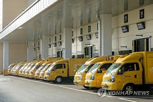 SSG닷컴 물류센터에 주차된 쓱배송 차량 |