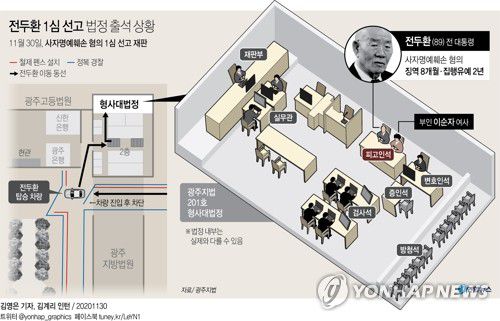 (광주=연합뉴스) 장아름 기자 = 전두환(89) 전 대통령이 5·18 헬기 사격 목격자를 상대로 한 사자명예훼손 혐의에 대해 유죄를 선고받았다.