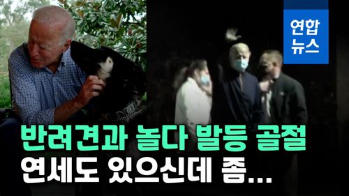 (서울=연합뉴스) 조 바이든 미국 대통령 당선인이 반려견과 시간을 보내다 미끄러져 오른쪽 발에 골절상을 입었습니다.