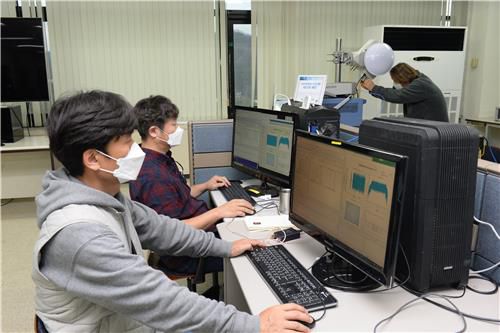 무선 백홀 기술 점검하는 ETRI 연구진 |
