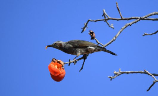 1일 경남 거창군 신원면 덕산리 청연마을 앞 감나무에서 직박구리 한 마리가 홍시를 쪼아 먹고 있다.(사진=연합뉴스) |