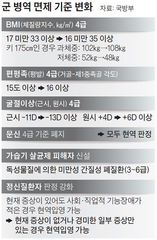 군 병역 면제 기준 변화 |