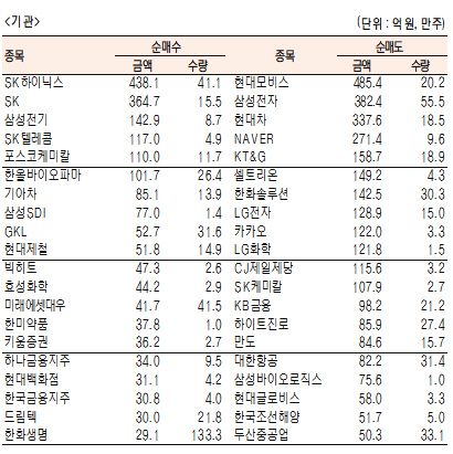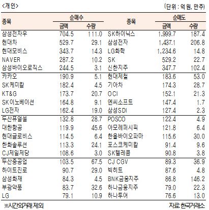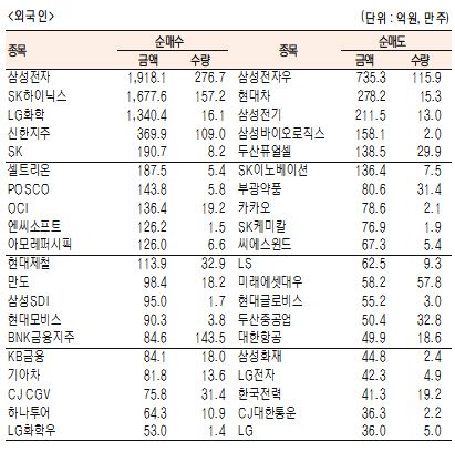 [표]유가증권 기관·외국인·개인 순매수·도 상위종목(12월 2일)
