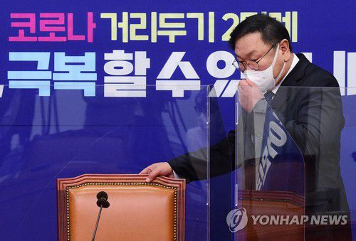 (서울=연합뉴스) 김동호 홍규빈 기자 = 더불어민주당 김태년 원내대표는 2일 "지금은 윤석열 검찰총장 때문에 어려운 상황"이라며 "잘 헤쳐나가야 한다"고 말했다.