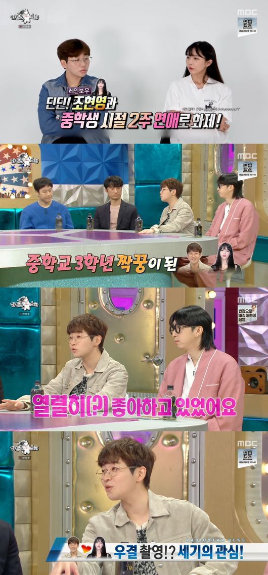 딘딘은 “중학교 3학년 때 같은 반이 되고 짝이 됐다. 그런데 얘가 생각보다 괜찮았다. 조현영도 나를 열렬히 좋아했다. 그래서 사귀게 됐다. 내가 중학교 때 리즈 시절이었다”고 말했다.