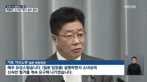 (서울=연합뉴스) 이정현 기자 = KBS가 메인 뉴스에서 일본 정부가 신종 코로나바이러스 감염증(코로나19)을 브리핑하는 장면에 독일 평화의 소녀상 철거를 요구하는 자막을 입혀 논란이 일자 수정하고 "단순 실수"라고 해명했다.