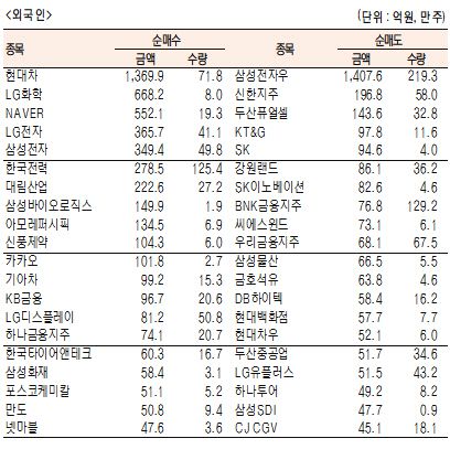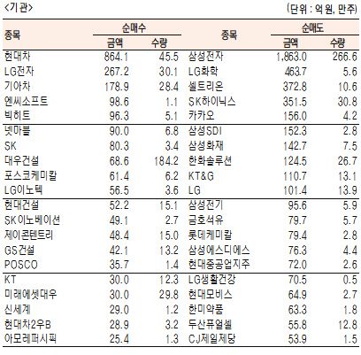 [표]유가증권 기관·외국인·개인 순매수·도 상위종목(12월 3일)