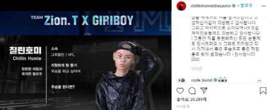 다음은 래퍼 칠린호미가 인스타그램에 올린 전문.