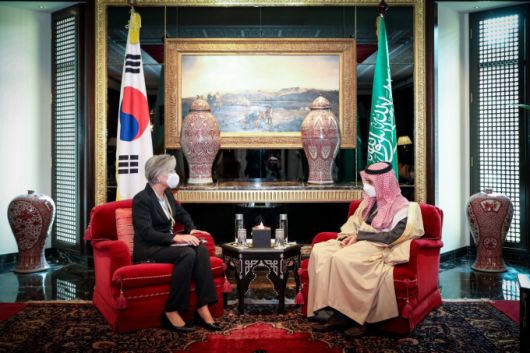 강 장관은 올해 주요20개국(G20) 정상회의 의장국 사우디가 이 회의를 성공적으로 개최한 것을 축하하고, 사우디가 제시한 ‘코로나 백신과 치료제의 공평하고 충분한 보급’의 중요성에 공감을 표명했다. 또 자구적 백신 확보와 함께 개도국을 지원하는 개발협력 차원의 세계 백신 공급 매커니즘인 코백스 퍼실리티(COVAX Facility) 등 백신 협력 필요성을 강조했다.
