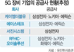 7일 한국거래소에 따르면 4일 5G 장비 대장주 케이엠더블유(032500)는 전일 대비 1.10% 오른 7만 3,300원에 마감했다. 케이엠더블유는 연초부터 이날까지 43.44% 뛰었고, 쏠리드(050890)(95.93%), 에이스테크(088800)(189.67%) 등도 쏠쏠한 수익률을 기록 중이다. 하지만 지난 9월 4일 이후 석 달간 케이엠더블유(-14.57%), 쏠리드(-21.19%), 오이솔루션(138080)(-18.63%) 등은 고전하고 있다. 케이엠더블유의 경우 올 3·4분기 영업이익이 60억 원(컨센서스 246억 원), 쏠리드는 영업적자 43억 원(57억 원)이라는 실적 부진이 발목을 잡았다. 지난 9월 삼성전자의 버라이즌 수주를 계기로 5G 업종의 주가가 달아올랐지만, 고대하는 발주 소식이 들리지 않으며 성장 스토리에 흠집이 나기 시작한 것이다.