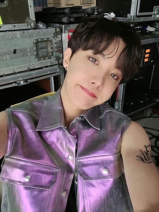 6일 오전 제이홉은 방탄소년단 공식 SNS에 "아미 고마워여 내일두 기대해도 조앙"이라며 셀카 두 장을 게재했다.