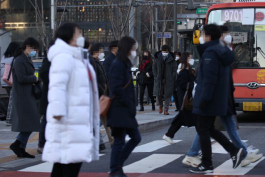 지난 4일 오전 두꺼운 복장을 한 시민들이 서울 광화문사거리를 지나고 있다. [연합] |