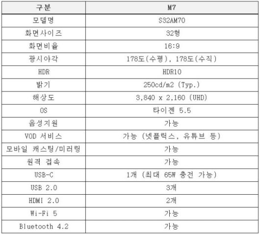 제품 가격은 출고가 기준 M7 32형이 55만원, M5 32형과 27형이 각각 41만원, 35만원이다. 이날부터 카카오메이커스를 통해 사전 예약 판매를 진행하며 28일부터는 삼성닷컴 등 온라인 마켓을 통해서도 구매할 수 있다.
