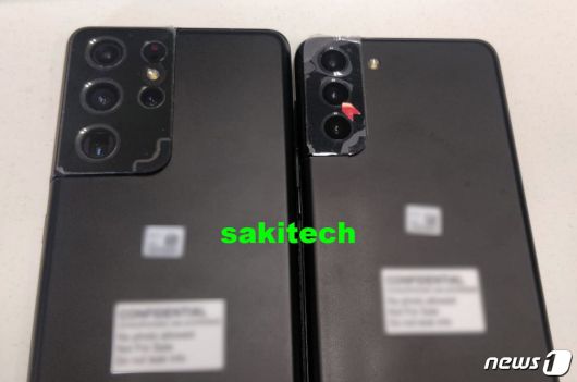 갤럭시S21 실물 추정 사진. 왼쪽이 갤럭시S21 울트라, 오른쪽이 갤럭시S21 플러스(+)로 추정 <출처=사키테크(sakitech) 유튜브 영상 갈무리> © 뉴스1