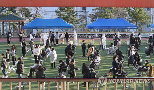 코로나19 검사 기다리는 학생들 |