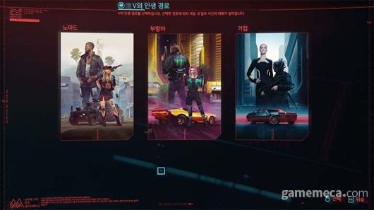 ▲ 사이버펑크 2077에서 인생경로 3가지 중 하나를 선택해야 한다. (사진: 게임메카 촬영) |