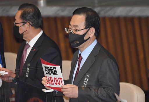 황교안 전 미래통합당(국민의힘 전신) 대표는 4·15 총선 이후 8개월여 만에 사회관계망서비스(SNS)에 글을 올려 여당의 공수처법 개정안 일방 처리가 “대한민국 민주주의와 국민에 대한 선전포고”라고 일갈했다. 국회 법제사법위원회 국민의힘 소속 야당 간사인 김도읍 의원은 민주당의 공수처법 개정안 강행 처리를 저지하지 못한 책임을 지고 전날 당에 상임위 사임계를 제출했다. 사임계는 아직 수리되지 않은 것으로 알려졌다.