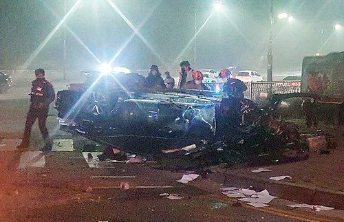 그랜저 승용차는 여기서 멈추지 않고 반대편 차로에서 유턴하던 티볼리 차량을 추돌한 뒤 전복됐다.