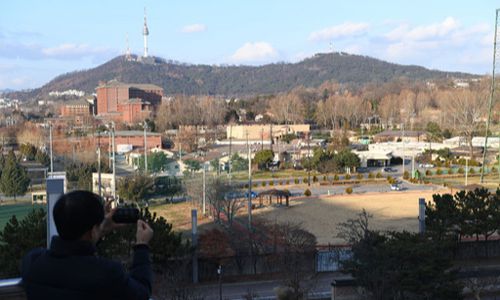 서울 용산 주한미군기지를 한 시민이 촬영하고 있는 모습. 허정호 선임기자 |