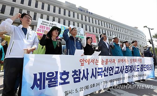(서울=연합뉴스) 최재서 기자 = 2014년 세월호 참사 당시 시국선언에 참여해 재판에 넘겨진 전국교직원노동조합(전교조) 소속 교사들이 11일 유죄를 선고받았다.