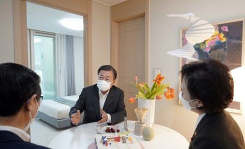 강 대변인은 “문 대통령은 이어지는 대화에서 변 사장에게 다자녀 가구를 위해 더 넓은, 중산층의 거주가 가능한 임대주택이 필요하다고 강조하셨다”라고 부연했다.