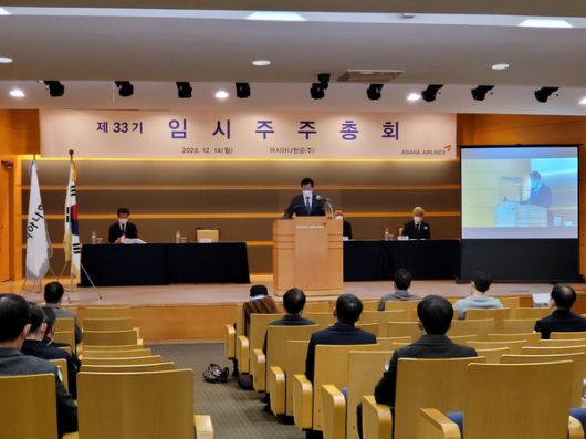 아시아나항공은 14일 오전 서울 강서구 본사에서 임시 주주총회를 열어 균등 무상 감자를 결정했다. /김우영 기자 |