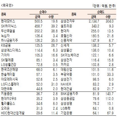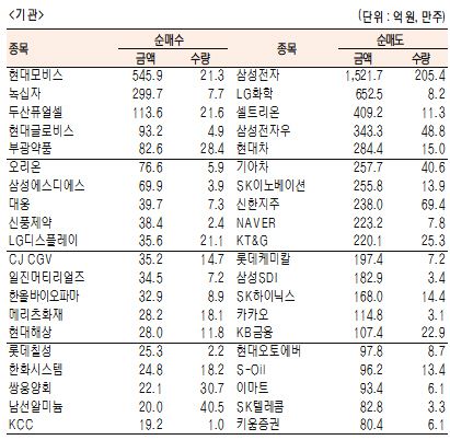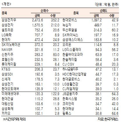 [표]유가증권 기관·외국인·개인 순매수·도 상위종목(12월 14일)