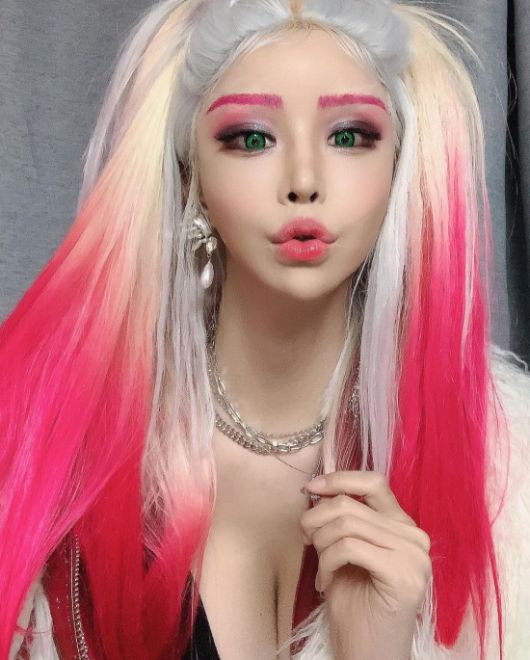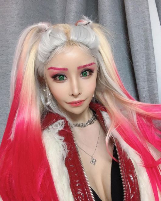 공개된 사진 속 하리수는 게임 캐릭터를 연상케 하는 화려한 염색 헤어스타일과 메이크업을 하고 인증샷을 남기고 있는 모습. 가슴골을 드러내고 섹시한 매력도 함께 뽐내어 눈길을 끈다.