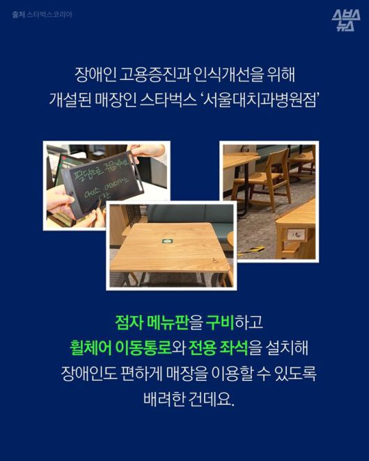 점자 메뉴판, 휠체어 전용 공간 등 장애인 친화적인 환경을 조성한 건데요,