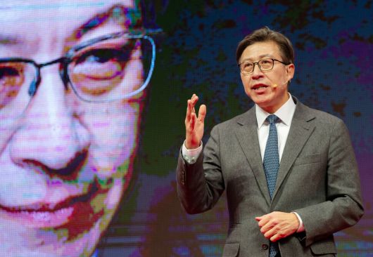 박형준 동아대 교수가 15일 오전 부산항 국제여객터미널 국제전시컨벤션센터에서 부산시장 보궐선거 출마를 선언하고 있다. 연합뉴스 |