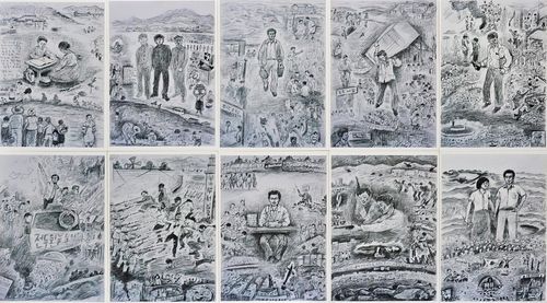 윤상원 열사의 일대기를 담은 작품의 밑그림 |