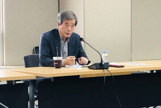지난 8월 김진경 국가교육회의 의장이 정부세종청사에서 기자들과 이야기를 나누고 있는 모습. 국가교육회의 제공 |