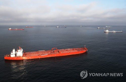 미국 캘리포니아 앞바다의 유조선들 |