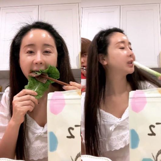 앞서 이날 "먹방 준비. 지금 곧 시작합니다"라는 예고글을 남겼던 그는 이후 라이브 방송을 켜고 한우 먹방을 시작했다. 남편 진화도 함께. 이에 팬들은 시터 이모가 먹지 않는 이유를 궁금해 했고, 시터 이모는 저녁 7시 이후로 먹지 않는다고 답했다.