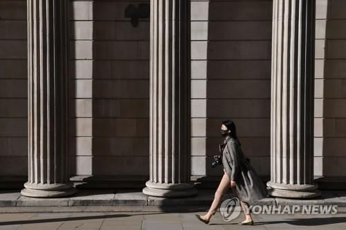 영란은행 앞을 마스크를 쓰고 지나가는 행인 [AFP=연합뉴스] |