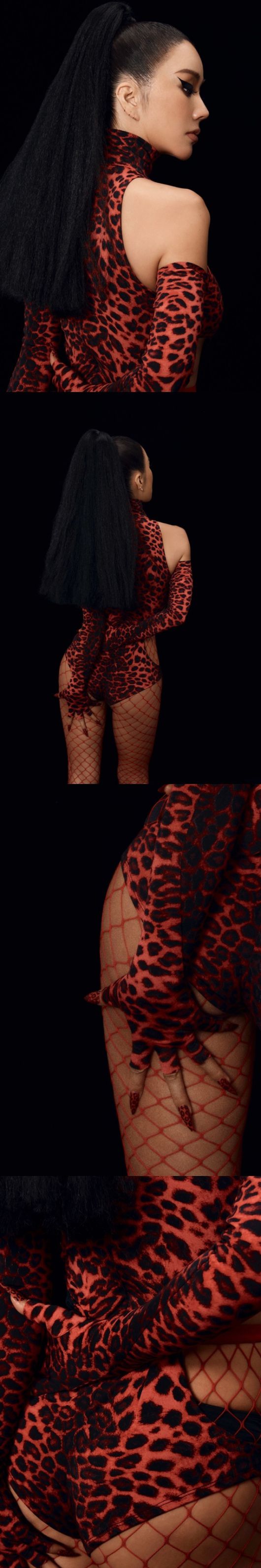 공개된 사진 속에는 뒤를 돈 채로 얼굴을 살짝 드러낸 엄정화의 모습이 담겼다. 엄정화는 몸매가 고스란히 드러나는 의상에 망사 스타킹을 소화하며 품격이 다른 카리스마와 섹시함을 발산했다. 강렬한 포니테일 헤어스타일과 짙은 스모키 메이크업 또한 시선을 압도했다.