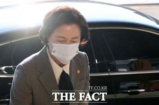 사의를 표명한 추미애 법무부 장관의 서울시장 출마설에 더불어민주당은 우려스런 목소리를 내놓고 있다. 지난달 25일 과천 정부과천청사 법무부로 출근하는 추 장관. /남용희 기자 |