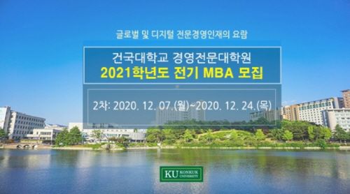 ▲ 건국대 경영전문대학원(KU MBA)은 오는 24일까지 2021학년도 전기 경영학석사(MBA) 신입생을 모집한다고 18일 밝혔다.