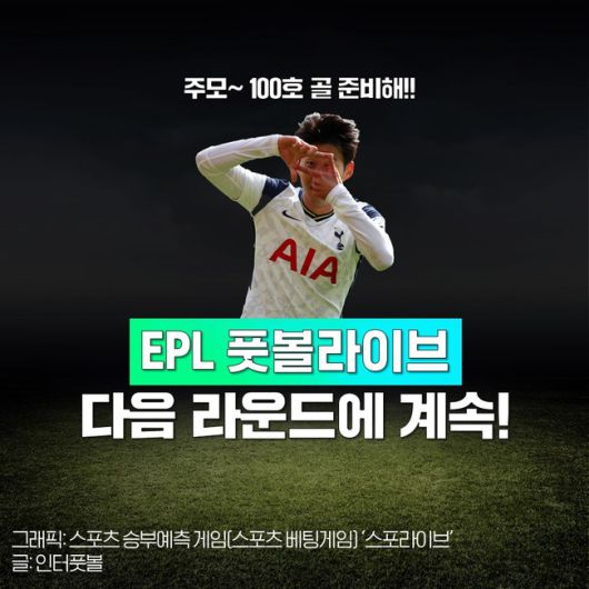 [인터풋볼] '주말 예능' 잉글리시 프리미어리그(EPL)와 함께 'EPL 풋볼라이브'도 돌아왔다. 매주 펼쳐지는 축구 전쟁, 바쁜 일정에 쫓기는 축구팬들을 위해 스포츠 승부예측 게임(스포츠 베팅게임) 업계 1위 스포라이브와 인터풋볼이 'EPL 풋볼라이브'를 통해 매 라운드 EPL의 경기 결과를 한눈에 살펴볼 수 있도록 정리한다. EPL의 흥미로운 이야기와 기록들, 여기에 시간 절약은 덤이다. 그리고 이번 시즌도 임팩트 있는 '짤'을 독자 분들에게 제공한다. 기대해주시라! [편집자주]