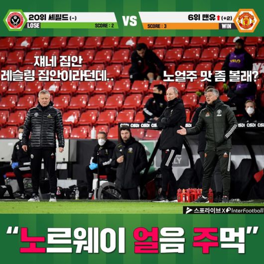 후반에는 흥미로운 장면도 나왔다. 3-2로 한 골 차 승부를 이어가던 후반 막판 경기가 과열됐다. 후반 추가시간 래쉬포드가 셰필드의 에단 암파두의 거친 태클에 걸려 넘어지자 이 장면에 대해 와일더 감독과 솔샤르 감독은 서로에게 삿대질을 하며 설전을 벌였다. 터치라인에 있던 대기심이 둘 사이에서 충돌을 막아설 정도였다.