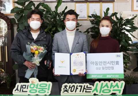 BGF 아동안전시민상 시민영웅 부문에는 위기에 빠진 아동을 구한 선행 시민 A씨, 조만호씨, 구창식씨 총 3명이 선정됐으며 감사장과 상패, 상금 1000만원이 각각 수여됐다.